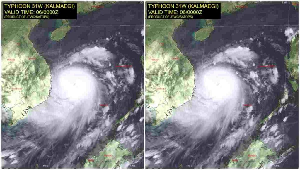 Setelah meninggalkan Filipina, Kalmaegi bergerak ke arah barat melintasi Laut China Selatan dan menghantam pesisir Vietnam Tengah pada Kamis (6/11/2025). Badai mendarat dengan kecepatan angin hingga 145 km/jam dan membawa hujan deras yang memicu banjir di beberapa provinsi seperti Quang Ngai, Gia Lai, dan Dak Lak.